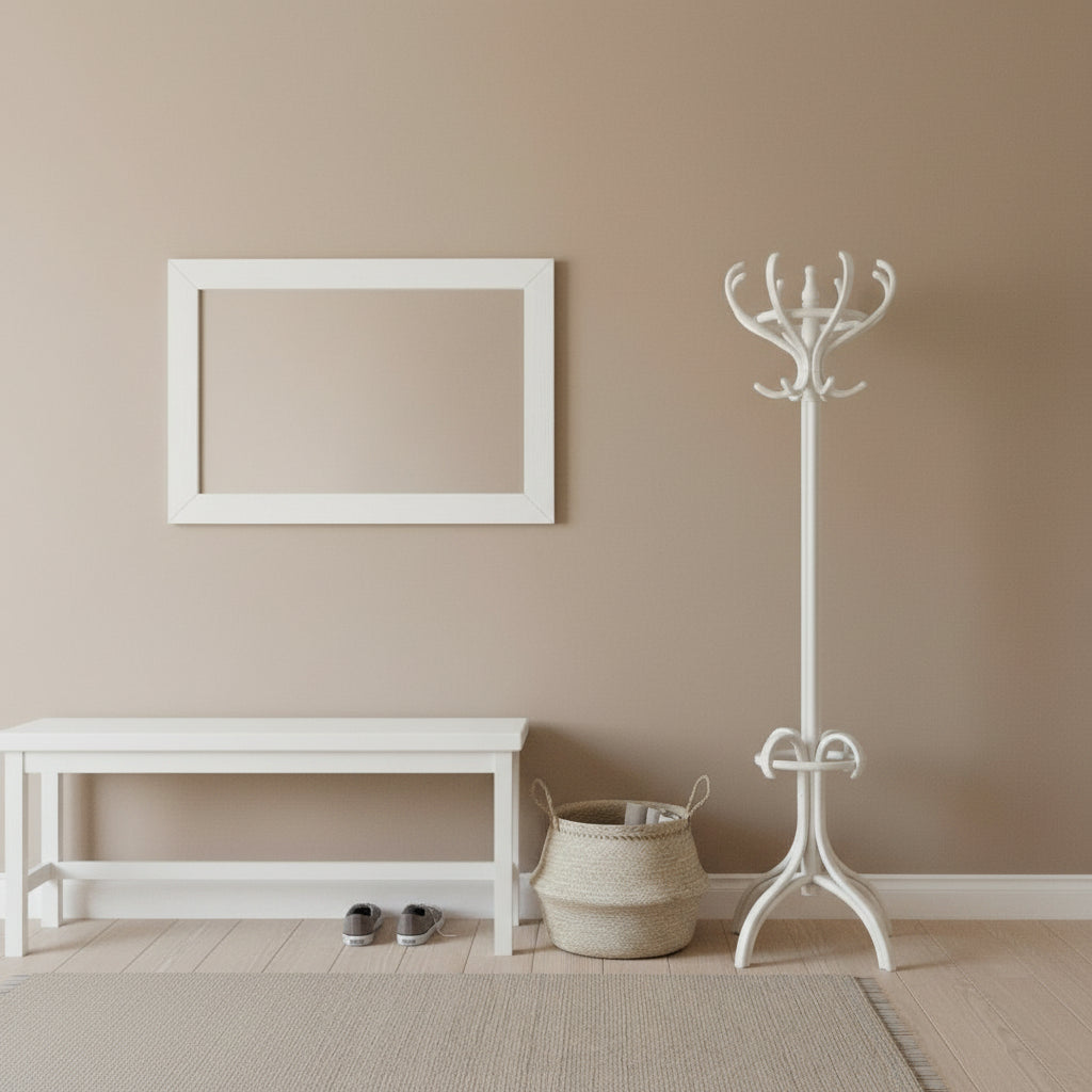 Mit ihrer eleganten Form, dem drehbaren Oberteil und der natürlichen Buchenholzstruktur vereint die Garderobe Tonet skandinavischen Stil mit Funktionalität und Qualität.
